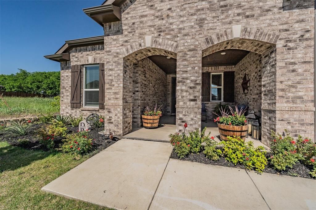 Greenspace and walking trail behind you!Impeccably upgraded better than new! This home makes an immediate impression with its expansive front porch—perfect for rocking chairs, lush greenery, and slow mornings or relaxing with a glass of cold iced tea. A private ensuite offers ideal separation for guests or multigenerational living. Sunlight pours through an abundance of windows—even into the closets—creating a bright and inviting feel throughout. A versatile flex space adapts to your needs as a home office, playroom, or lounge. The open living area is expansive and inviting, anchored by a gas fireplace with a statement mantel and durable tile flooring.The chef’s kitchen is designed for gathering, featuring upgraded appliances, a 5-burner gas range, soft-close cabinetry, and a sprawling breakfast bar for baking, dining, or everyday connection. A walk-in pantry delivers exceptional storage, while the dining area overlooks a private backyard backing to a walking trail and greenspace. Enjoy indoor dining or unwind on the extended covered patio.The primary suite is a true retreat with a sitting area and backyard views, complemented by a spa-inspired bath with a supersized walk-in shower, dual vanity, and an impressively large closet. Carpet is limited to bedrooms. Additional upgrades include designer lighting, window treatments, surround sound, and more—full list available in supplements. Conveniently located minutes from historic Old Town Justin.