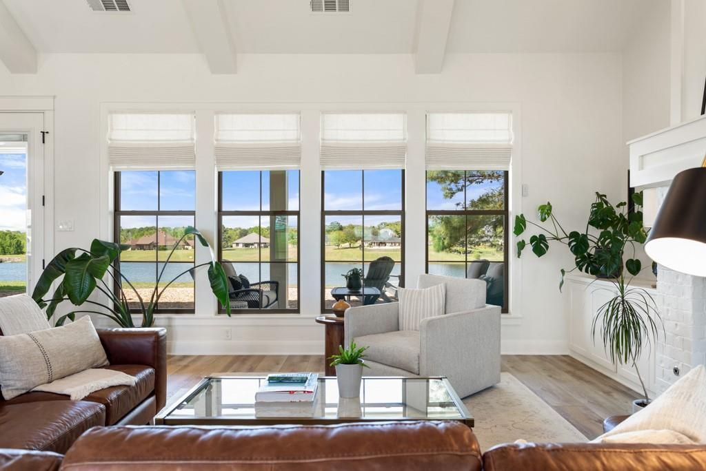 Warm & welcoming waterfront home on over an acre in Stallion Lake Ranch equestrian community. This thoughtfully designed 1954 square foot, 3-bedroom, 2.5 bath 2021-built home is full of character, craftsmanship, and functionality. From the moment you walk in, you’ll notice the open-concept living space with vaulted ceilings, exposed beams, a gas log fireplace, stunning wall of windows overlooking Marsh lake, along with additional front-facing windows that fills the room with natural light. The neutral design palette, and wood-look LVP flooring create a warm, inviting feel throughout. Beautiful woodwork and multiple mud bench areas--including two flanking the front entry, one off the garage hallway, and another in the guest bath—perfect for everyday living and hosting guests. The kitchen is both beautiful and practical, featuring leathered dolomite marble countertops, drop-in convection range, Zellige inspired subway tile backsplash, stainless steel dishwasher, cabinetry that extends to the ceiling, and abundant drawer storage (almost all of lower cabinets are drawers), and pantry. The farmhouse sink overlooks the lake, adding to the home’s peaceful feeling. The primary suite is a retreat of its own, with beam details on the ceiling and elegant wainscoting accents. The ensuite bath offers a freestanding soaking tub, separate shower, dual sinks, private water closet, and generous closet space. The photos are not fooling you. This home is immaculate! Enjoy the covered back porch with space for dining and relaxing, plus an extended pea gravel patio—perfect for entertaining. Oversized two car garage. Designed with privacy in mind, the home captures serene lake views rather than neighboring properties. Located in a unique equestrian neighborhood with optional access to horse facilities, this home offers a lifestyle that’s hard to find—and easy to fall in love with! Not a horse person? Ok! Just enjoy the scenery, lake, quick access to I-20,Lindale, or Van. Van ISD.