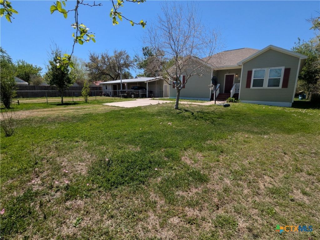 Charming Ranch-Style Home in Bloomington, Texas! Enjoy peaceful country living with convenient access to Victoria in this inviting single-level home. Offering approximately 1,500 sq. ft. of living space, this 4-bedroom, 2-bath property features an open-concept living, dining, and kitchen area?perfect for entertaining or family time. Accessibility is made easy with a ramp leading to the main entrance. Outside, you'll find a spacious third-acre lot shaded by mature trees, including a few fruit trees, and a fully fenced front and backyard. The oversized two-car garage provides abundant storage and workshop space for your projects or hobbies. With no HOA, youll have the freedom to make this property truly your own. An ideal choice for anyone seeking room to roam and the relaxed pace of country life?dont miss this opportunity!