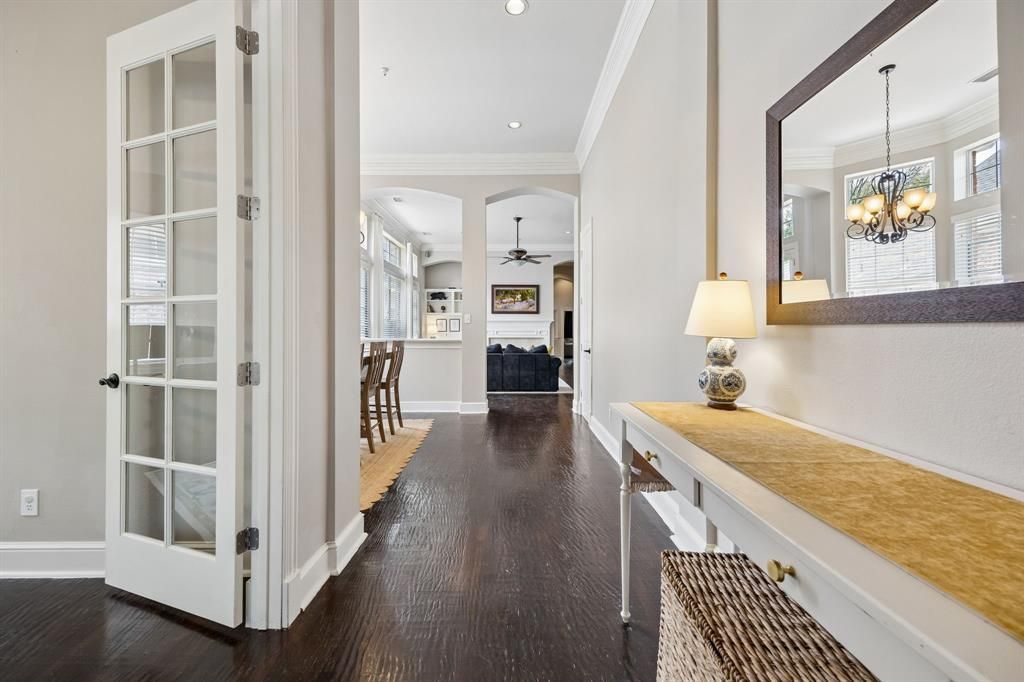 Beautifully updated + premium Park-side location! This thoughtfully improved single-story sits on one of the most desirable streets in Addison. Known for its elevated finish-outs, homes on Park Place feature tall ceilings, enhanced trim work, and a more refined feel throughout. Offering 4 bedrooms, 2.1 baths, and 2,304 square feet, the open-concept floor-plan is designed for both everyday living and entertaining. Rich wood flooring runs throughout the home with no carpet, complemented by high-end finishes and abundant natural light that enhances the seamless flow between the living, dining, and kitchen areas. The expansive eat-in kitchen features an open-concept design, showcasing granite counter-tops, a large center island, and high-end stainless steel appliances—perfect for effortless entertaining. The primary suite offers a private retreat with a remodeled bath featuring designer finishes, real marble flooring, and a spa-inspired atmosphere. The secondary full bath is updated and configured in a Jack-and-Jill layout, while the flexible fourth bedroom provides an ideal option for a home office or guest space. Step outside to a private backyard sanctuary complete with a spa and fenced 45’ lap pool, all set against a serene greenbelt backdrop. This tranquil outdoor setting offers both privacy and a rare sense of openness—perfect for relaxing or entertaining in style. Enjoy the added benefit of no HOA dues, along with exclusive resident access to the 55,000 sq-ft Addison Athletic Club featuring resort-style amenities. Ideally located near Addison’s trail system, dining, shopping, and major corridors, this home offers an exceptional blend of luxury, convenience, and lifestyle. This is a rare opportunity to own a beautifully updated home in one of North Texas’ most walk-able and sought-after communities. 3D VIRTUAL TOUR AVAILABLE**